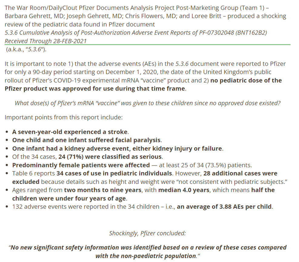 A new report is revealing the fact that infants and children under 12 years old received the Pfizer covid injections 7 months before the pediatric approval. It seems that 71% have suffered serious adverse reactions. Check out the latest data below.