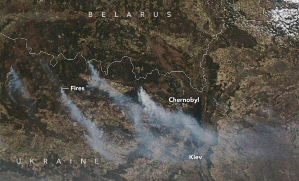 NASA shared impressive new photos of the Chernobyl wildfire evolution. The images were obtained via Aqua satellite, and they show large columns of smoke migrating to Ukraine’s border with Belarus, which is situated 10 miles (16km) from the former nuclear power plant.