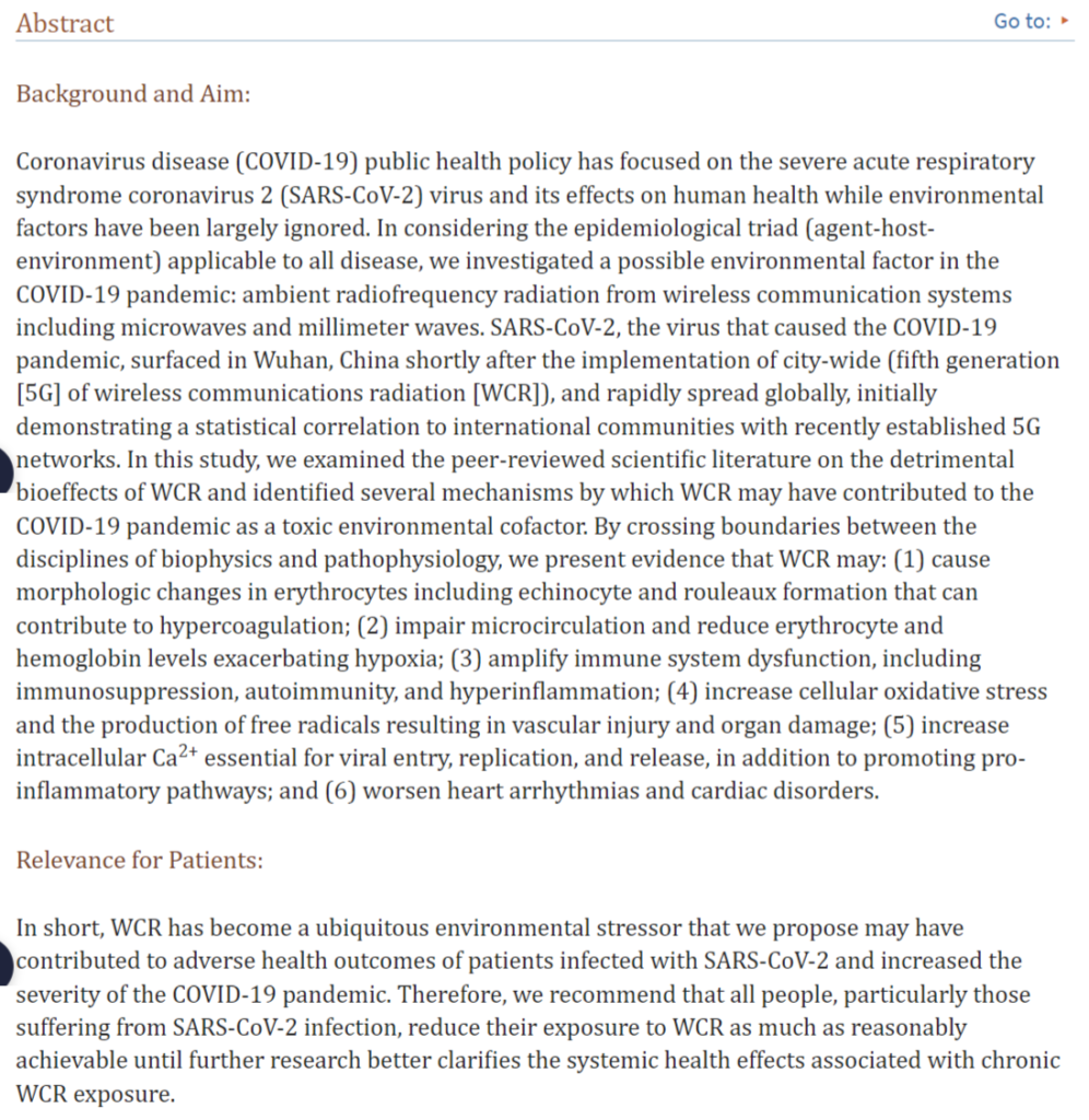 Here’s what the study on Nih.gov is called: “Evidence for a connection between coronavirus disease-19 and exposure to radiofrequency radiation from wireless communications including 5G.”